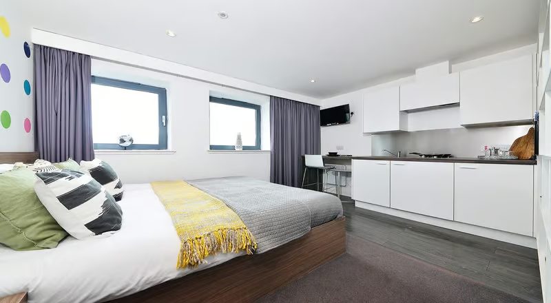 Want your own private space? Our newly refurbished Large Plus Studio gives you the ultimate independence, with communal areas on-site so you can hang out with your besties. If you fancy breaking a sweat, there’s a gym on-site, as well as a cinema room if you feel like catching a movie! We want to give you a fine balance between work and play and create a home away from home. So get ready to sink into your super comfy double bed and catch some z’s for the best night’s sleep ever in your classic studio.