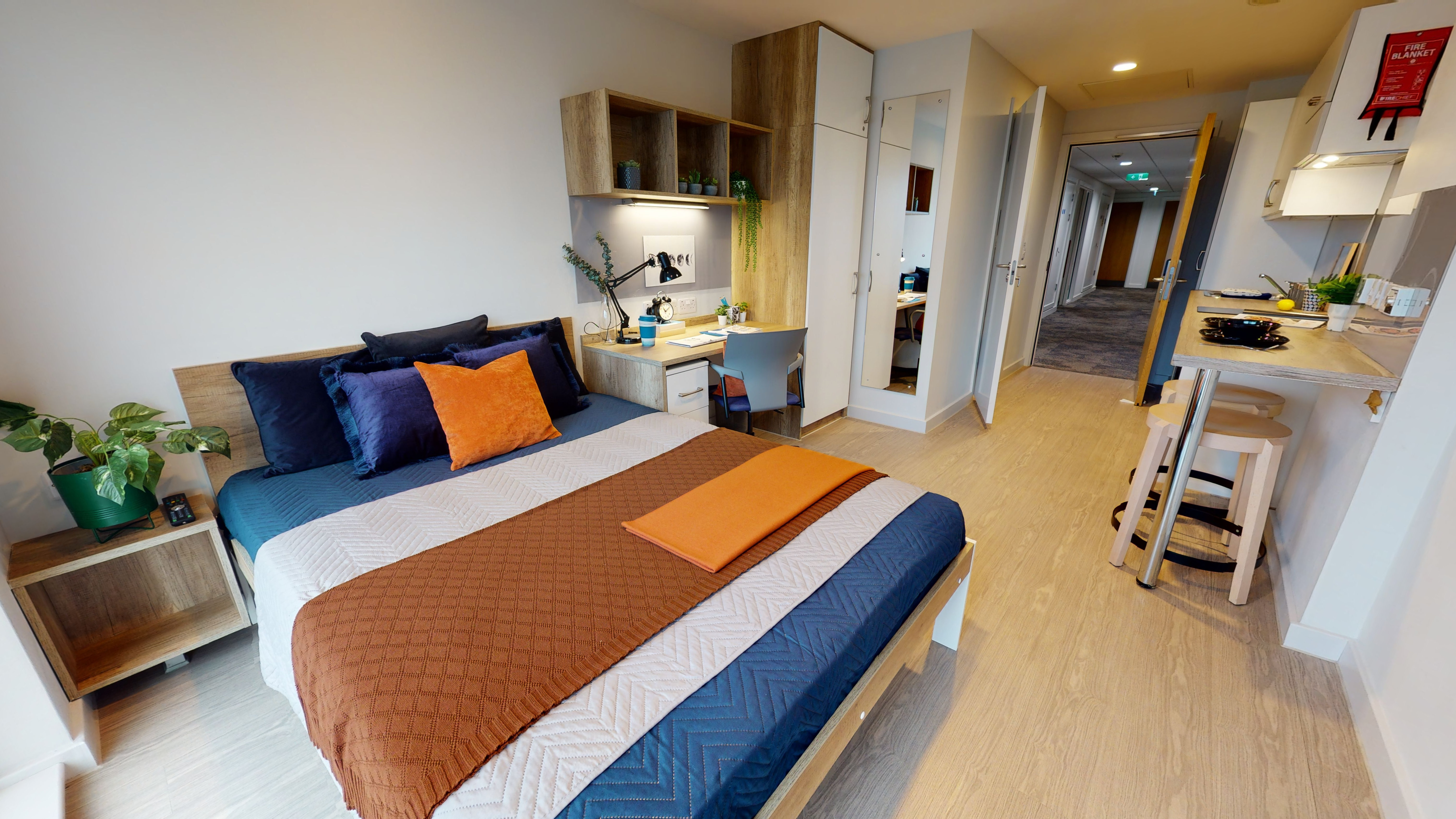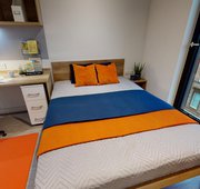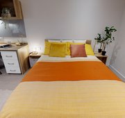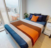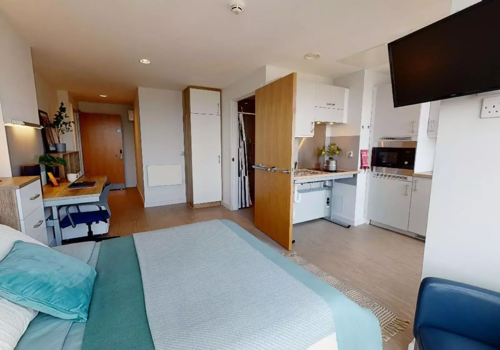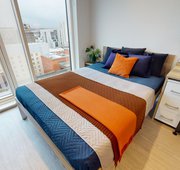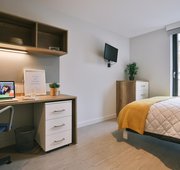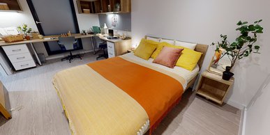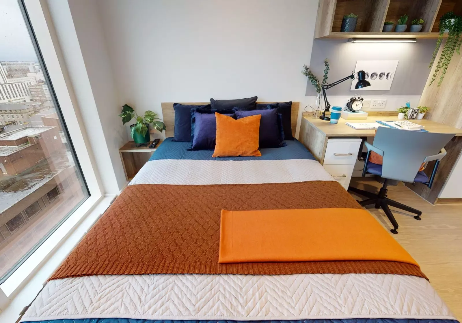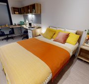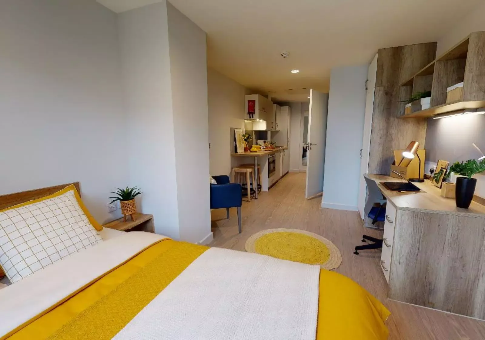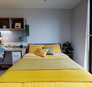 ELGI250-031125Offering the same features and great amount of space and storage as our Silver Studio, these upgraded versions are on floors 8 to 12 and offer some stunning views over the city. With a roomy 20 sq m of living space, full size double bed, study area, fully fitted kitchen and bathroom, you get all the privacy and facilities you need. With a creative studio, 7th floor terrace, a gym, private dining room and a pool table in this newly designed building, you’ll have everything you need for a great life at uni.