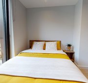 ELGI250-031125With just over 14 sq m of space containing a small double bed, modern furniture, private bathroom and large recessed window with city views, these rooms are great value for money. No need to compromise on privacy and comfort. With plenty of storage space and a study desk and chair, you’ll have everything you need. A big shared kitchen and living space means you get the best of the student experience, and with a creative studio, 7th floor terrace, a gym, private dining room and a pool table in this newly designed building, you’ll have everything you need for a great life at uni.