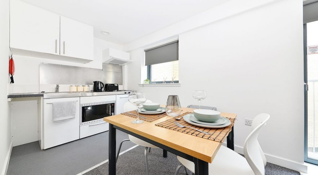 Self-contained spacious studio measuring 22.5m2 with a double bed, kitchenette, en-suite bathroom, study area, wardrobe and up to 100Mbps WIFI throughout.