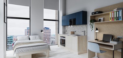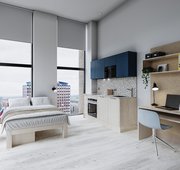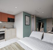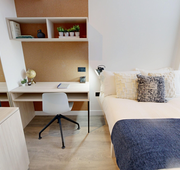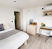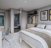 Our one-bedroom apartments offer a spacious living area of 30m², separating your study area and bedroom for enhanced privacy. Each apartment includes a double bed, ample storage, a dedicated study area, a fully fitted kitchen, and a private en-suite bathroom. Superfast Wi-Fi and all-inclusive bills ensure a comfortable and independent living experience.