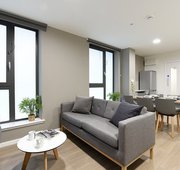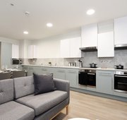 Communal kitchen and living space with up to 7 en-suite rooms per flat Situated on ground and 1st floor Room Size: 17m² Small double bed Underbed storage, wardrobe, personal study space with desk and chair