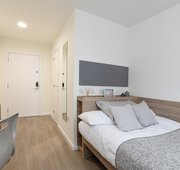 Communal kitchen and living space with up to 7 en-suite rooms per flat Situated on the 6th and 7th floors Room Size: 15m² Small double bed Underbed storage, wardrobe, personal study space with desk and chair