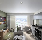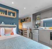 The Smart studio gives you the room to sleep, study and socialise. This medium size apartment has a comfortable double bed, en-suite bathroom and a fitted kitchen.