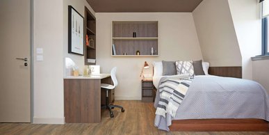 Go Superior and we’re really giving you space to do your thing. Still treated to the en-suite shower room, small double bed, oodles of storage, fitted kitchen and study area but now with so much more clearance to enjoy them. More than enough room for two to share and the price doesn’t change.