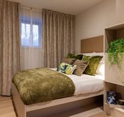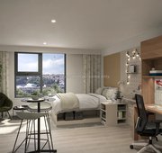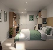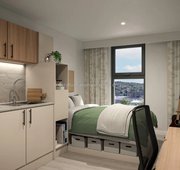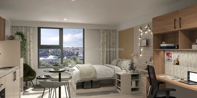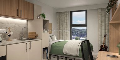 If you’re looking for a modern and luxurious apartment to call home whilst at university, then choose our Gold Studio option. Within your self-contained apartment which offers waterside views you’ll have your own comfortable bed, private en-suite bathroom, designated study space, ample storage space and modern kitchenette. Whilst staying at HD1, you can make the most of our communal spaces from our communal lounge to our games room to our private dining room to our boujee cinema room to our co-living work spaces, you’ll certainly make friends in no time. These room styles are located on 1st, 2nd, 3rd or 4th floors depending on the block.