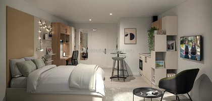 Our Bronze Plus Studio option at HD1 is larger in size than our Bronze option so, if you’re someone who wants more space to yourself then this room style will be ideal. Fully furnished to the highest standards featuring large windows offering great views across Manchester Road, as well as your own cozy bed, en-suite bathroom, ample storage space, modern kitchenette as well as your own study space and desk area. Whilst living within the property, you’ll be able to make the most of our fantastic communal spaces including our boujee cinema room, communal lounge, games room, on-site gym, and a private dining area
