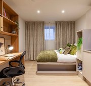 Our Platinum Plus Studio is the largest and most sophisticated option at HD1 – bigger is always better! Offering waterside views of the canal, this room option comes furnished with your own comfy bed, a private en-suite bathroom, designated study space, fully-furnished kitchenette, ample storage space as well as large windows offering peaceful waterside views. There’s plenty of communal spaces on-site for you to meet new people including our games room where you can go for a game of shuffleboard or pool. If you’d rather get to know the other residents, head to our communal lounge or cinema room. These room styles are located on either the 1st, 5th, 6th or 7th floors depending on which block you are in