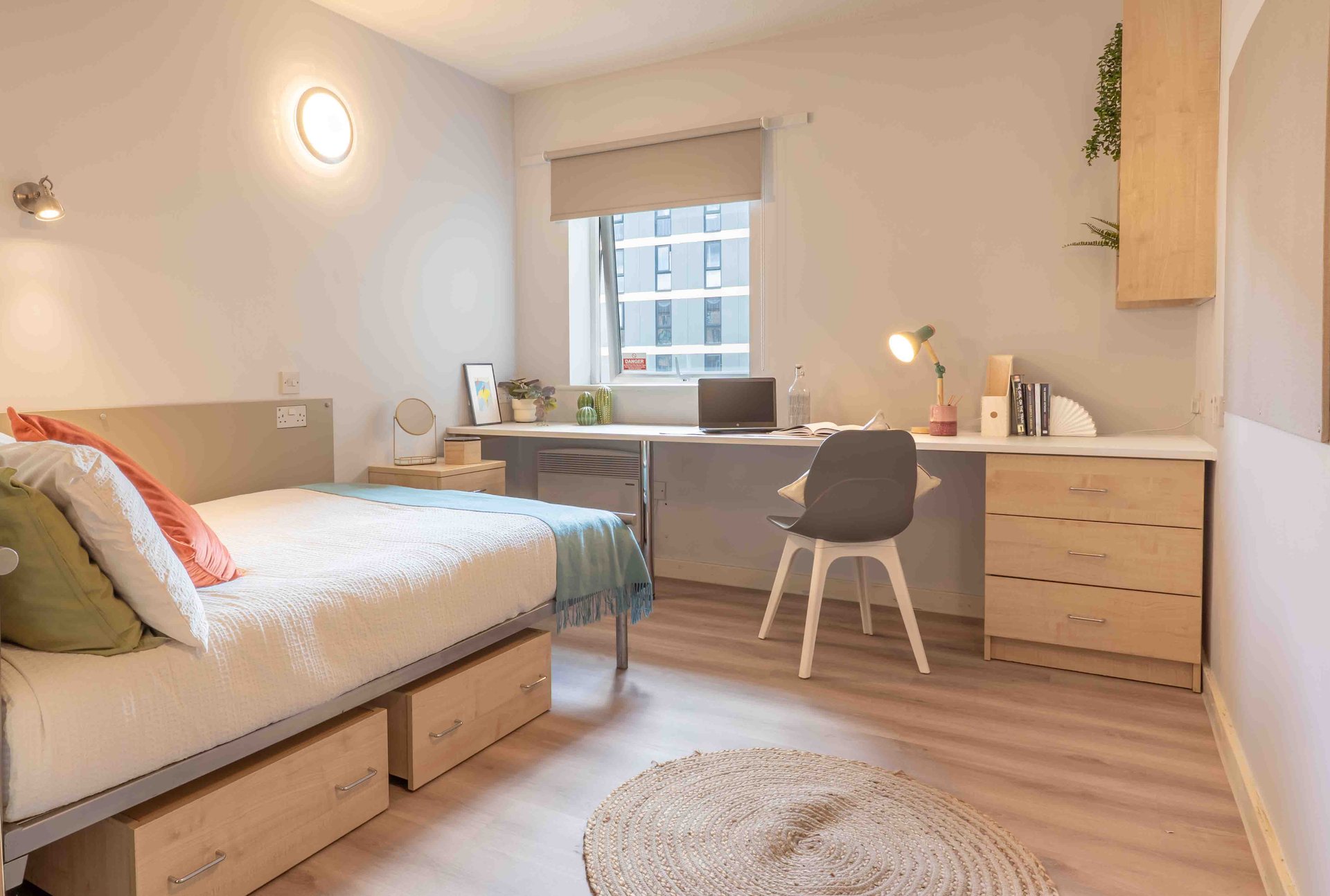 ASPL300-031125These great value rooms give you good space and storage with a private bathroom, study area and small double bed with underbed storage all included.