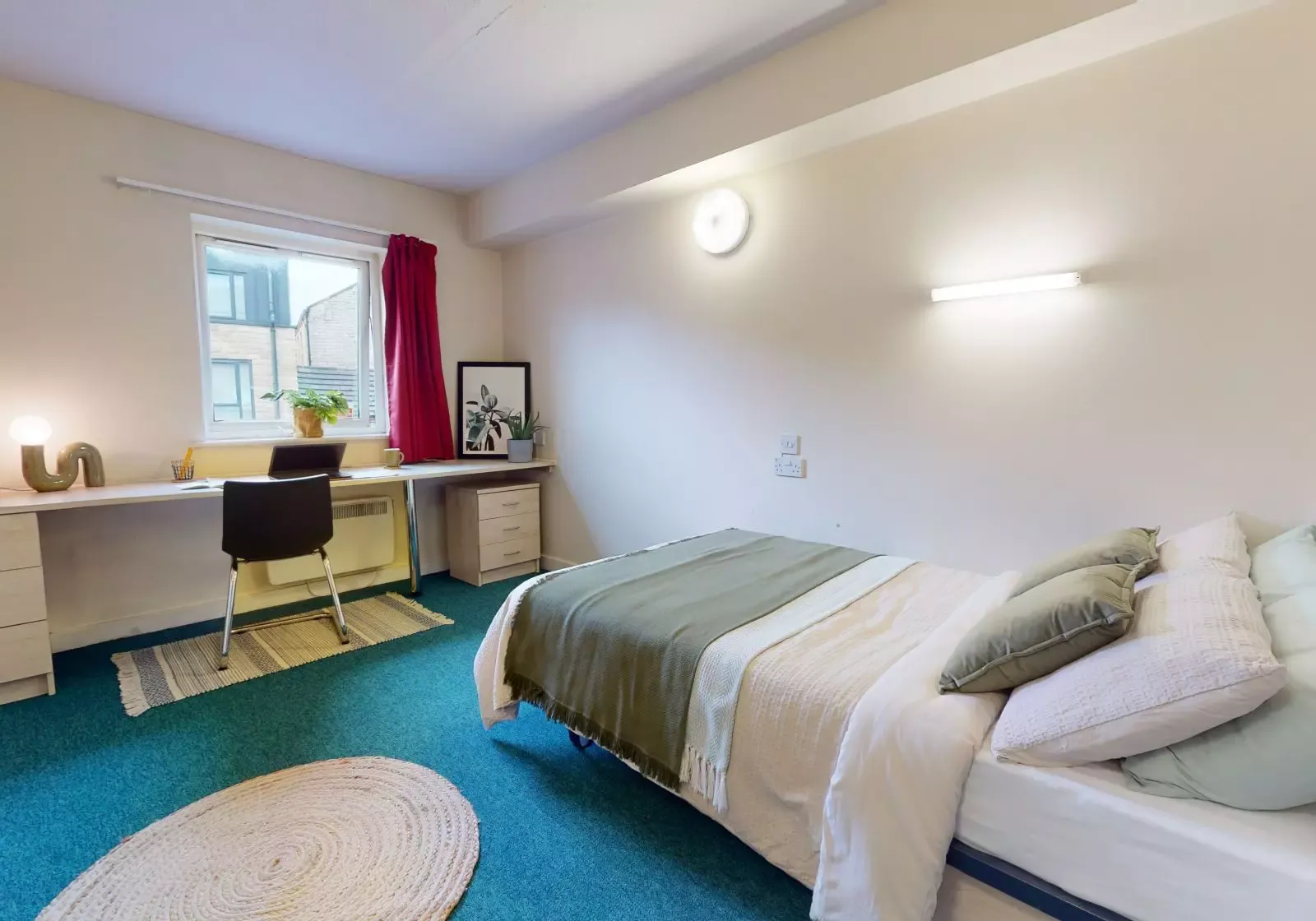 ASPL300-031125These great value rooms give you good space and storage with a private bathroom, study area and small double bed with underbed storage all included. The spacious shared kitchens and living spaces come with comfy sofas, dining table and chairs. With multiple social and outdoor spaces, a laundry and a gym also on hand in the building, you’ll have everything you need.