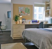 ASPL300-031125These great value rooms give you good space and storage with a private bathroom, study area and small double bed with underbed storage all included. The spacious shared kitchens and living spaces come with comfy sofas, dining table and chairs.