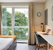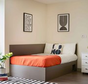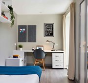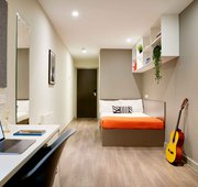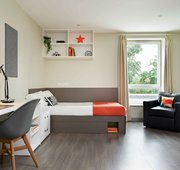 3/4 double bed Studying Large desk and chair Spacious wardrobe Underbed storage Bookshelves The amenities: Private kitchen Bathroom En-suite Microwave, kettle