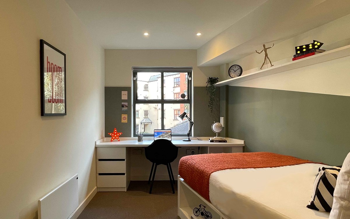 Our flats come with private en-suite bathrooms, a shared kitchen/living area and plenty of space for you to study or relax.