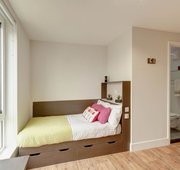 Studio living at Davidson House doesn’t get any roomier than this. The top-notch facilities feature an en suite shower room, double bed, bag-loads of storage, fitted kitchen, and study area.