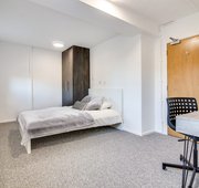 The exceptionally spacious self-contained one bed apartment is finished to a high specification and perfect for studying, relaxing and entertaining friends. The size of this room also makes it great for dual occupancy. This apartment has everything a student needs for comfortable, contemporary living, and includes a bedroom with double bed and study area, ample storage, lounge area, self-contained kitchen, dining area and an en-suite bathroom.