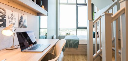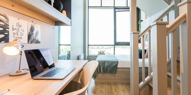 If you fancy more space on the top floor with panoramic views of the local area and floor to ceiling windows, then the studios Superior Silver Studio are the right choice for you. 3/4 double bed, wardrobe and study area complete with a desk and chair Private bathroom with large mirror Fully equipped private kitchen with a table and chairs