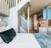 Our penthouse offers a superior, luxury living experience spread across two floors. Bathroom Private Kitchen Private Utility bills All included Room size 28.2m² Great views of the city Double bed, plenty of storage and study space Fully equipped kitchenette with dining area and sofa