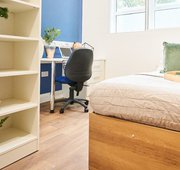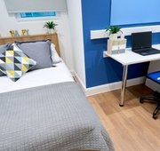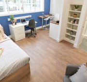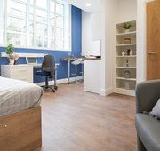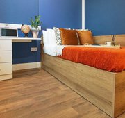 Measuring around 18-19m², the Standard Studio and comes with a double bed, dining area, ample storage, mirror, study desk and chair and modern kitchenette with fridge-freezer, microwave oven and hob. This studio also has a fully fitted en-suite containing a large shower and stylish fittings. You'll also enjoy access to the on-site gym, common room, communal dining room.