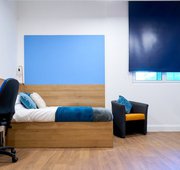 Measuring around 25m², the Premium Accessible Studio and comes with a 3/4 bed, dining area, ample storage, mirror, study desk and chair and modern kitchenette with fridge-freezer, microwave oven and hob. This studio also has a fully fitted en-suite containing a large shower and stylish fittings. You'll also enjoy access to the on-site gym, common room, communal dining room.