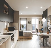 Room sizes may vary from 22.3m2 to 24m2 - Your own private studio - Private en-suite with shower - Small double bed with under be d drawers - Bedside table or shelving - Over bed storage - Double wardrobe - Study desk with shelving - Desk chair - Notice board - Coat hooks - Mirror - Whats in the kitchen? - Your own kitchen with plenty of storage - Under counter built in full or combi oven - 4 ring induction hob - Integrated fridge/freezer