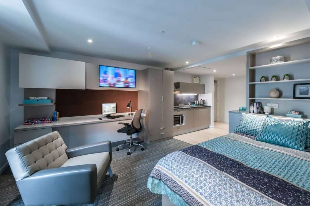 20.5 sq.m (approx), More then just a studio. Each room includes a small double bed, desk & chair, ample storage and en-suite shower in private options. Studios also come with a fully furnished kitchenette.