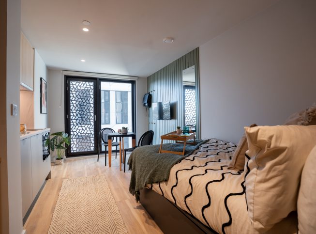 Your own calm, private retreat with an en-suite and kitchenette. Smart design and warm finishes make independent living effortless. Approx 21.00m²