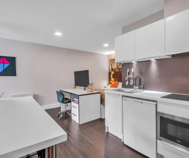 The different types of accommodations available at Iconinc The Edge include Smart, Elegance and Grande apartments. All three types fall into different budgets and you can choose the kind of accommodation that fits your personal needs and budget. What you will find consistent throughout these different apartments is the attention given to detail and comfort. You get a double or king-size bed, en-suite bathrooms, fitted kitchens and a dedicated area for storage and study. All of these also include living areas, some larger than the others; ones in which you will find two-seater sofas, dining tables, lounge areas, etc.