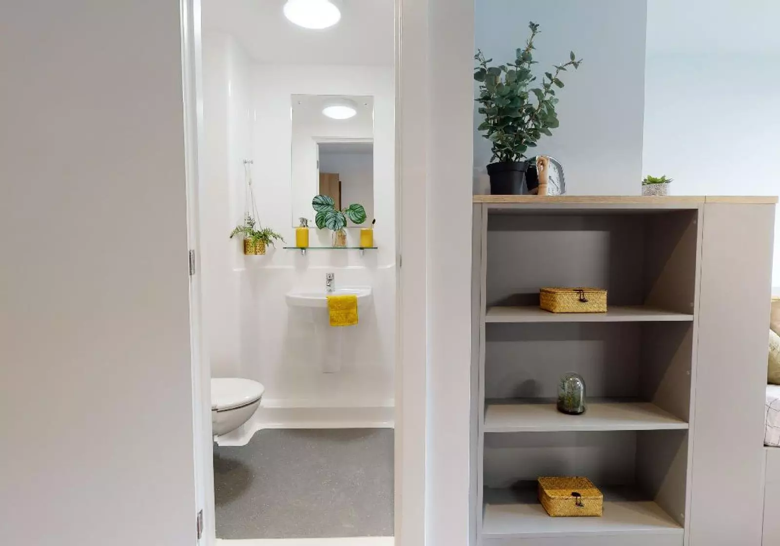 ALTU300-031125Private room Private bathroom Small double bed Conveniently located for Leeds' uni campuses, these rooms are found on floors 10-24, and offer 13sq m of living space with all the essentials. Your brand new room comes with a bed, study area, en suite shower room and plenty of storage space. You'll share a modern, well-equipped kitchen and living area with TV, and have the use of all the onsite amenities and social spaces including our fitness studio, cinema and roof terrace. Study desk and chair Shared kitchen Wardrobe Underbed storage TV & sofas in shared kitchen Private bathroom with shower