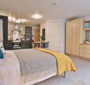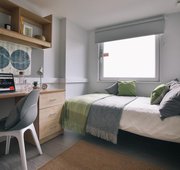 MARS500-031125With a 16 sq m spacious layout and all the essential features, these rooms are great value for money. Finished to a high standard with modern design, they also offer plenty of storage. Your room comes with a private bathroom, small double or double bed, study area with desk and chair and lots of storage options. The shared, kitchen and dining room have loads of room for cooking and lounging, and with a cinema, gym, PlayStation rooms, garden and laundry, you get some great extras in the building too.