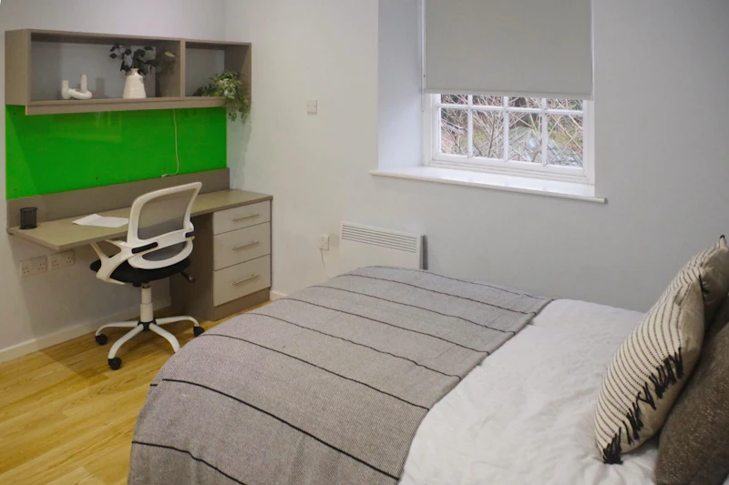 Looking for a student room that gives you privacy, comfort, and a social vibe all in one? The Classic Ensuite at Kirkstall Brewery is a solid pick. You’ll get your own private room with an en-suite bathroom, a comfy double bed, a spacious desk, a fitted wardrobe, and plenty of storage – everything you need to feel right at home from day one. You’ll be part of a friendly flat shared with 5 or 6 other students, so it’s easy to find your crew without sacrificing your own space. The shared kitchen is a buzzing hub for cooking, chatting, and those spontaneous group dinners that turn into nights to remember.