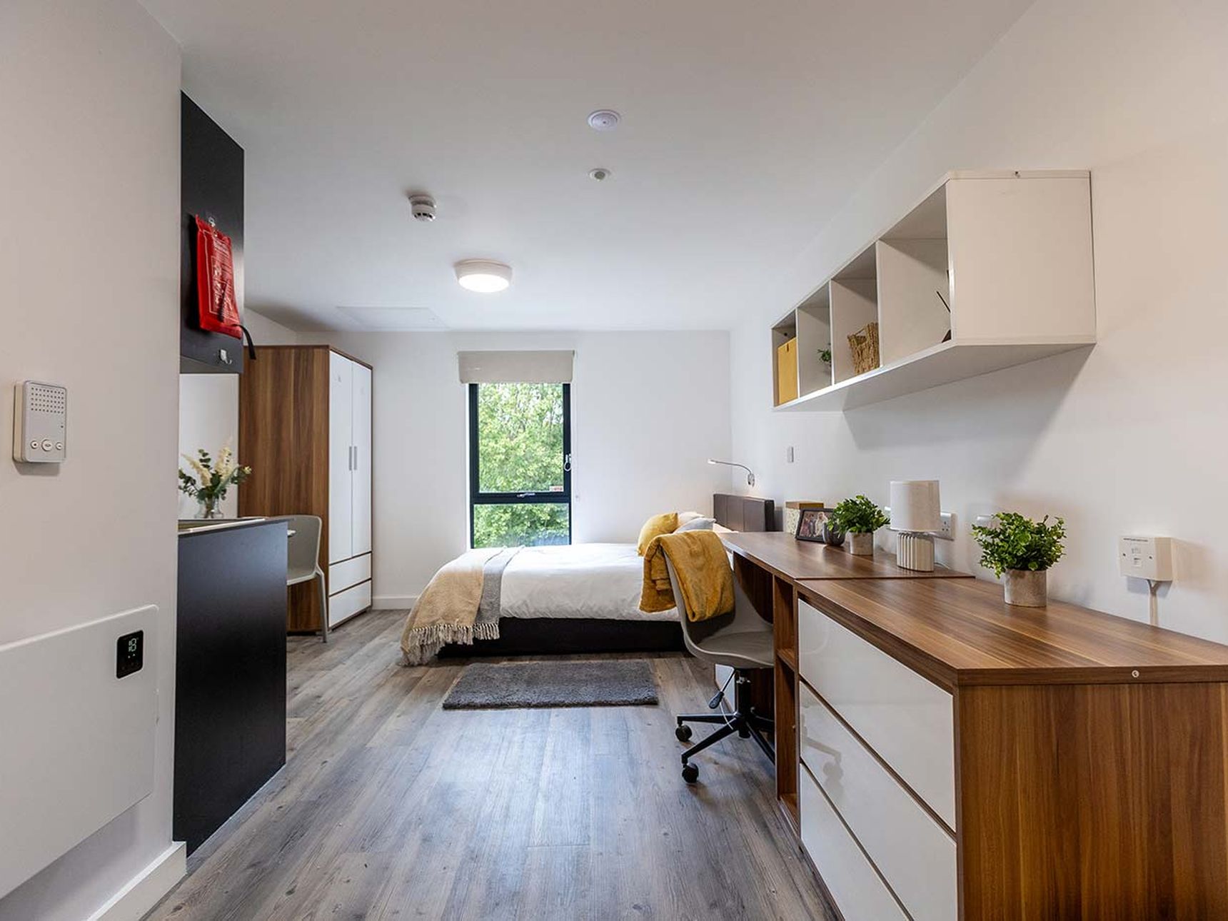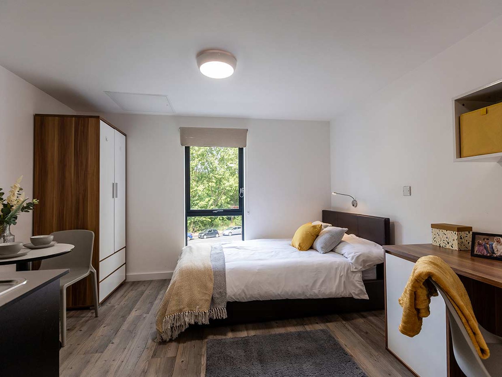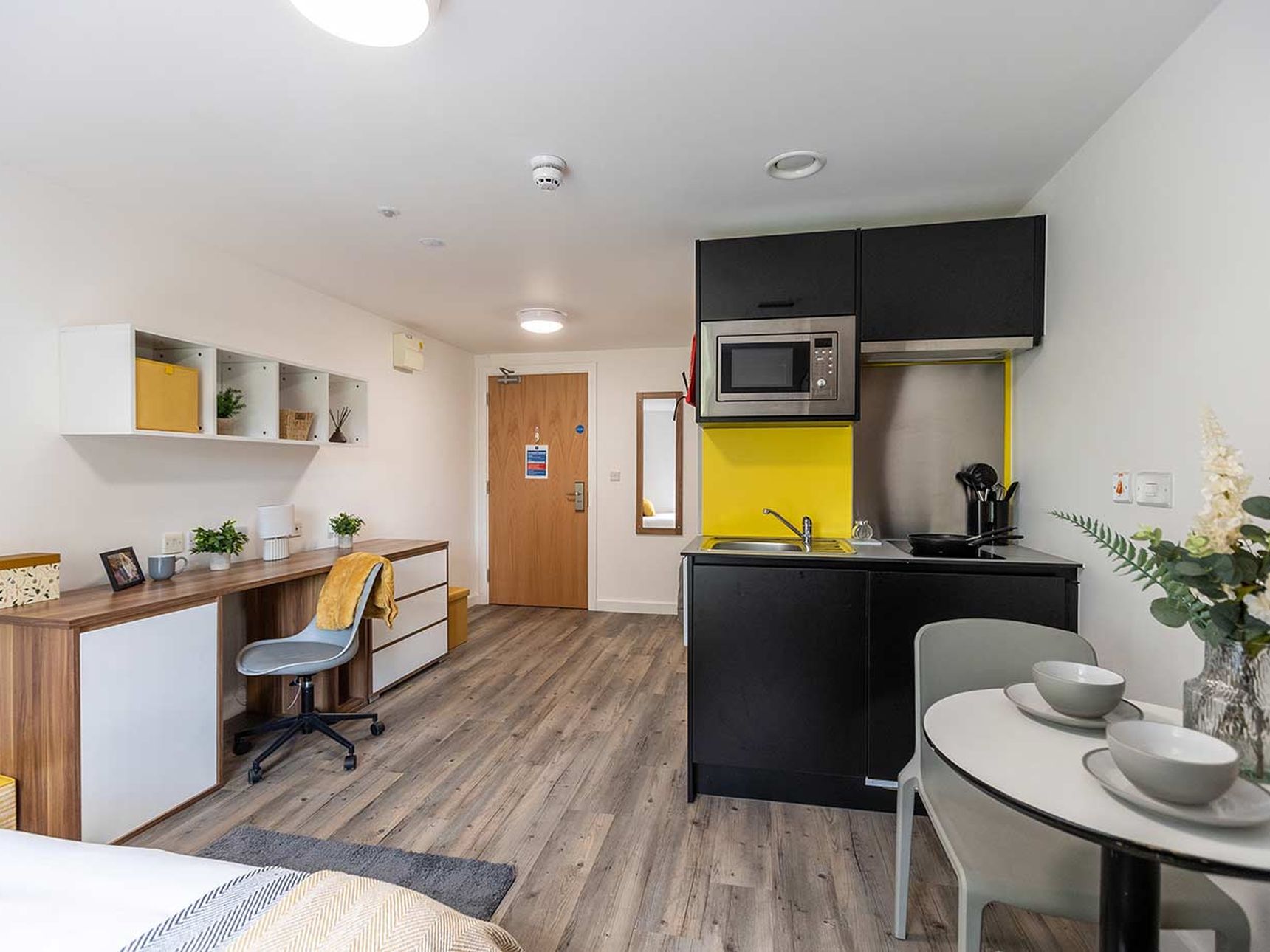 Each studio at St Albans combines style and practicality. In every corner, you’ll find well-thought-out spaces with amenities like a fully equipped kitchenette, Smart TV, and a private en-suite. Every room is designed to provide the ultimate comfort, with highlights like double beds in all studios and premium options offering king-size beds and enhanced features such as dishwashers and panoramic views.