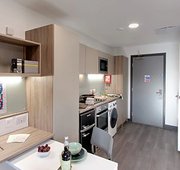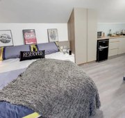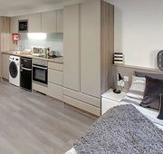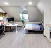 Choose between a 27m² or 28m² Superior Studio, each designed to offer a premium blend of space, comfort, and contemporary style. Both options include a fully equipped kitchen with a fridge-freezer, washer-dryer, induction hob, multi-functional oven, microwave, kettle, and toaster — perfect for convenient modern living. The 27m² Superior Studio delivers a sleek, modern design with high-quality finishes, a double bed, desk, chair, and wardrobe, along with a bright ensuite bathroom. The larger 28m² Superior Penthouse Studio features a distinctive sloping roofline and an open-plan layout with added room for living and dining, plus generous storage options including under-bed space and a large wardrobe.