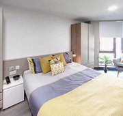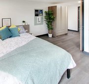Choose between an 18.5m² or 21m² Standard Studio, each designed to offer modern comfort and smart use of space. Both layouts feature a fully integrated kitchen with a fridge-freezer, washer-dryer, induction hob, multi-functional oven, microwave, kettle, and toaster — everything you need for easy everyday living. Each studio comes furnished with a double bed, desk, chair, and double wardrobe, while the bright interiors and well-planned layouts create a welcoming, open feel. The 18.5m² option features a stylish sloping roofline and, in some cases, a large wet room, while the 21m² layout offers a more generously proportioned open plan design.
