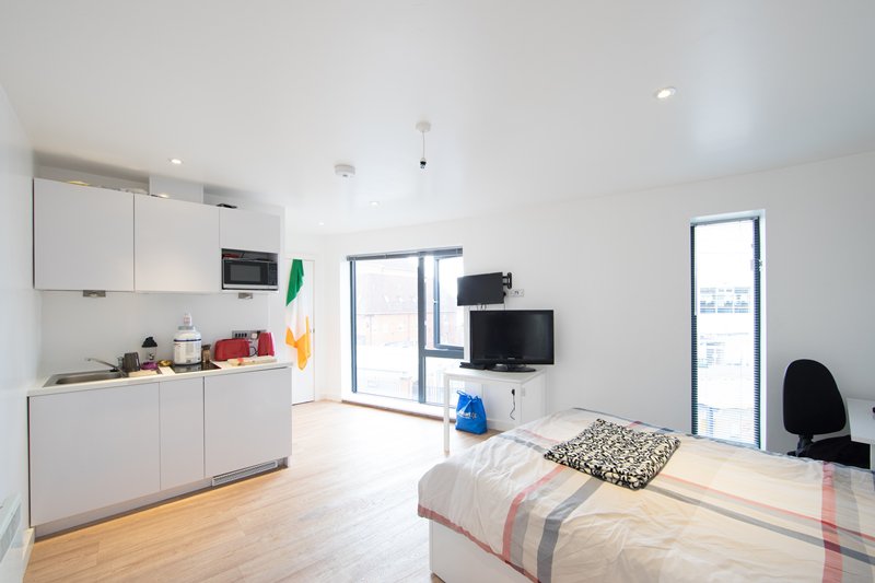Over 24m2 Premier self-contained studio room are fitted with ¾ bed, wardrobe, chest of drawers, study desk and kitchenette. The studio is fitted with a power shower.
