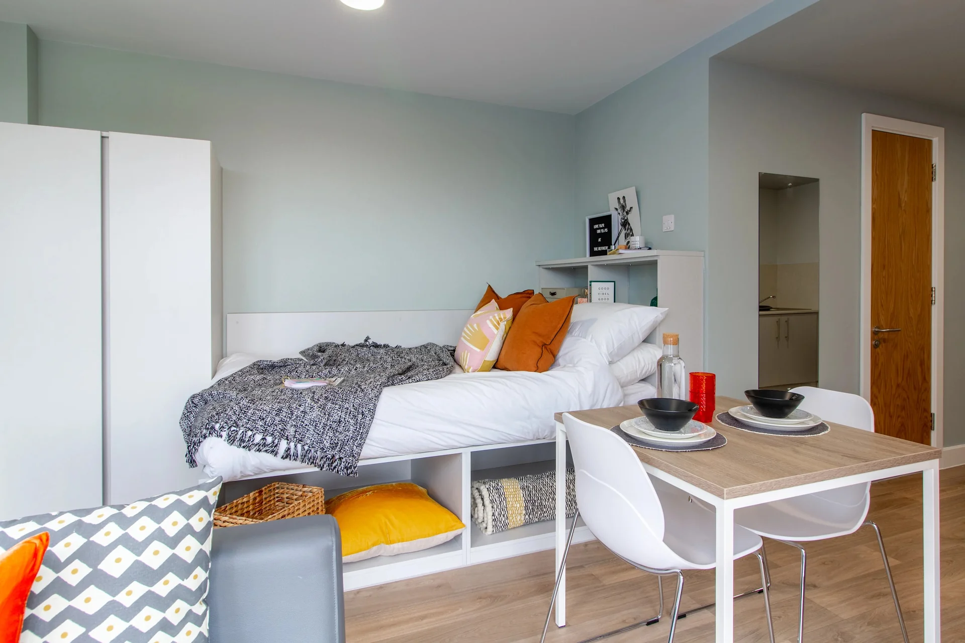 Each studio comes with a small double bed, loads of workspace and storage, a TV, a private en suite with shower and your own private mini-kitchen. The Bronze Studios are located on Ground floor up to the 2nd Floor. All studios have around 28sqm worth of space.