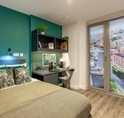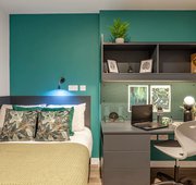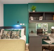 Choose our Deluxe Plus Ensuite if you’re after your own room with a snug bed, ample storage space and a study desk and chair. You’ll even have your own en-suite bathroom, so you don’t have to worry about waiting for other people! If you want to socialise with others, head to the kitchen and living space which you’ll share with flatmates. You can utilise our fantastic communal spaces after a busy day, whether it’s chilling in the Tv room and watching a film or chatting to the other residents in the lounge.