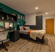 Choose our Deluxe 6 Bed Ensuite if you’re after your own room with a snug bed, ample storage space and a study desk and chair. You’ll even have your own en-suite bathroom, so you don’t have to worry about waiting for other people! If you want to socialise with others, head to the kitchen and living space which you’ll share with 5 flatmates.