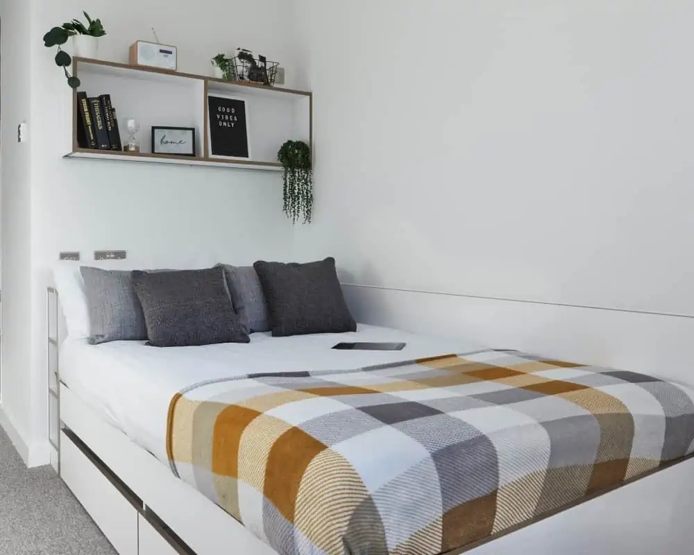 The living space. Room Size: From 14m² Bed : 3/4 double bed Studying : Large desk and chair Storage : Spacious wardrobe, Underbed storage, Bookshelves The amenities. Bathroom - En-suite Kitchen - Shared kitchen Appliances - Microwave, toaster, kettle, Dishwasher Internet - Free Wi-Fi & internet (up to 200Mb shared) TV - Shared Freeview TV
