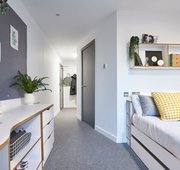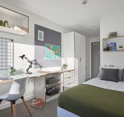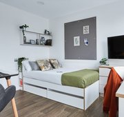 The living space. Room size - From 18m² Bed - 3/4 double bed Studying - Large desk and chair Storage - Spacious wardrobe, Underbed storage, Bookshelves The amenities. Bathroom - En-suite Kitchen - Shared kitchen Appliances - Microwave, toaster, kettle, Dishwasher Internet - Free Wi-Fi & internet (up to 200Mb shared) TV - Shared Freeview TV