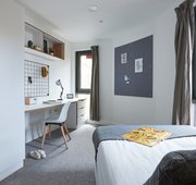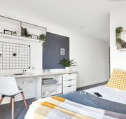 The living space. Room size - From 16.4m² Bed - 3/4 double bed Studying - Large desk and chair Storage - Spacious wardrobe, Underbed storage, Bookshelves The amenities. Bathroom - En-suite Kitchen - Shared kitchen Appliances - Microwave, toaster, kettle, Dishwasher Internet - Free Wi-Fi & internet (up to 200Mb shared) TV - Shared Freeview TV