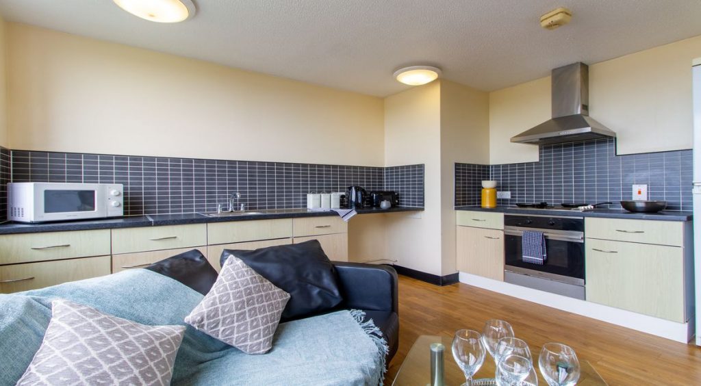 Self-contained accommodation featuring a ¾ sized bed, furniture and TV. Modern kitchen facilities, including fridge freezer. Up to 100Mbps WIFI. Newly completed for 19-20