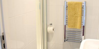 Self-contained kitchen and living space Approximately 24.3m² Small double bed, wardrobe, desk and chair (Please note that bedding and other soft-furnishings are not included) Sofas & TV set 2 ring hob, microwave/combi-oven, fridge freezer and washer/dryer En-suite bathroom with a shower cubicle, WC and wash basin