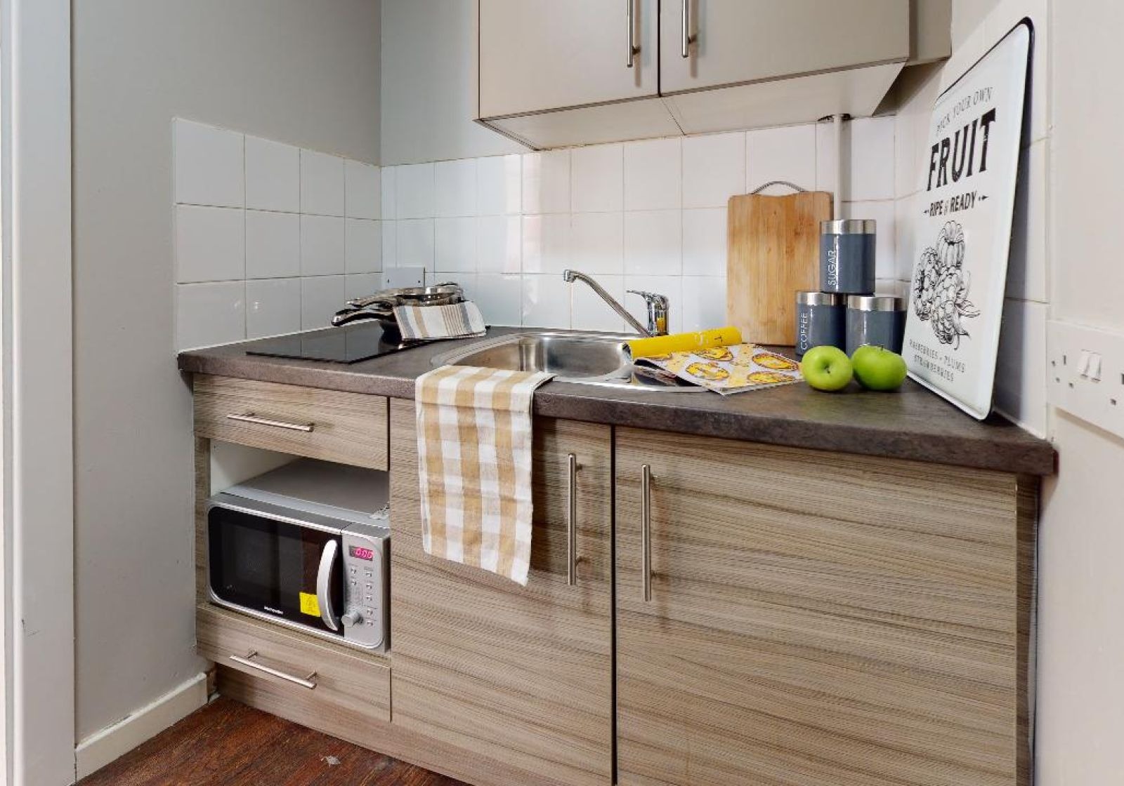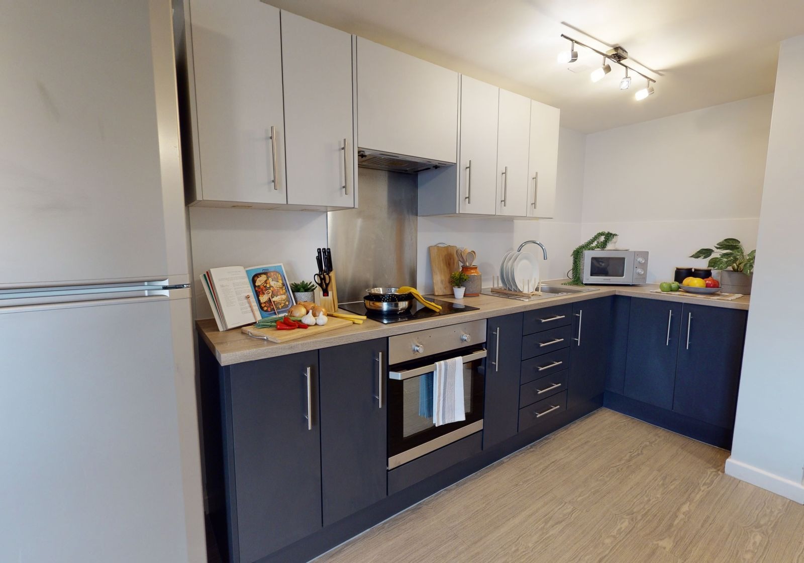Private flat Double bed Separate kitchen area Smart TV If you’re looking for the best student living experience possible, our one bed apartment gives you loads of space equipped with a separate fully fitted kitchen, large living and study area, en suite and private sleeping area.