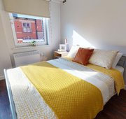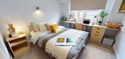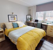 GROS200-031125Our entry-level rooms offer all the necessary features for a great student lifestyle Our excellent value for money Bronze en suite rooms come equipped with a small double bed, private bathroom, study desk and chair and storage in shelves, drawers and a wardrobe, classic and modern to suit any style. Sharing a spacious kitchen and living area with up to five others, the building also provides you with a pool table, onsite laundry and courtyard in the building.