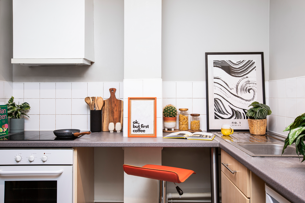 Inside, you’ll find a double bed with under-bed storage, a full-size wardrobe, and a ready-made study area so you can work from home with ease. The private kitchenette comes fully equipped with hobs, a microwave, an oven, and a fridge, giving you the freedom to cook and live by your own schedule.