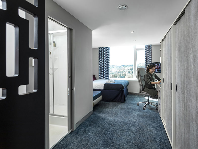 Platinum Plus studio rooms offer a fantastic design for student living that allows you to experience the full luxury of our student accommodation. Our Leicester Platinum Plus studios offer the same features as the Platinum studios, with the added benefit of being located on the much south-after top floor of the building. Within a Platinum Plus room you will find a double wardrobe, spacious desk space, 32-inch flatscreen smart TV, kitchen and bedding essentials upon arrival, superfast Wi-Fi, and much more! *Dual Occupancy available at an extra £30