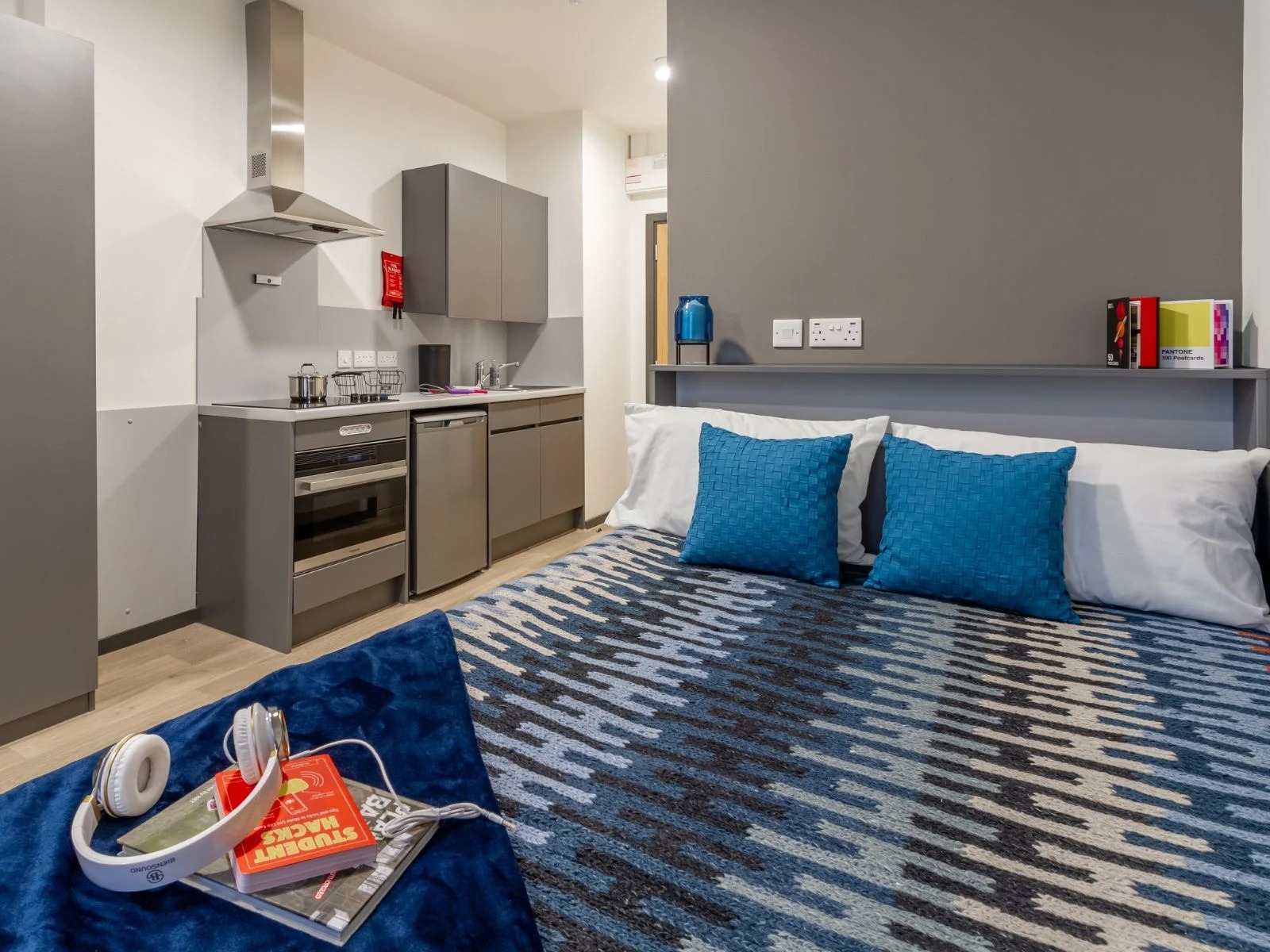 Enjoy your own en suite studio, equipped with a mini-kitchen, small double bed, loads of workspace and storage. Our Bronze Studios come with between 17-18 sqm of space. Plus, you can share as a couple with no added costs.