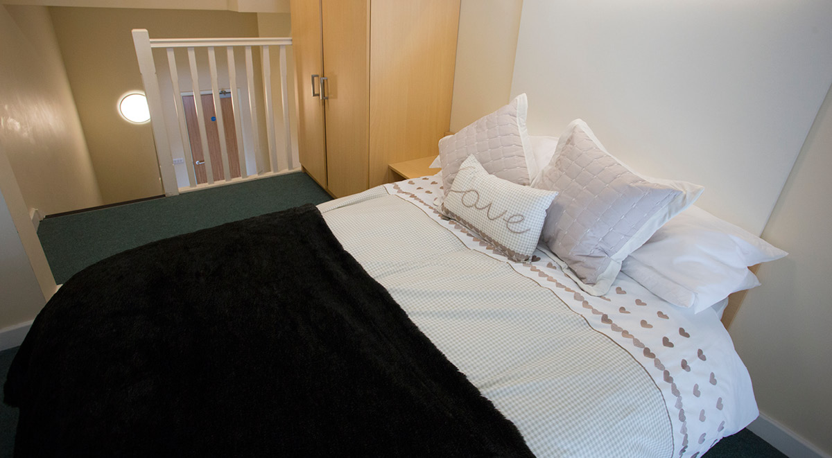 Deluxe Studio, situated on the first floor, benefits from a whole host of communal facilities, from TV lounges to a sociable common room with pool table and games console.There is also an on-site gym should you wish to break up your studies with a workout! For your convenience, there is also an on site management team, laundry and bike storage. Within your room, you can enjoy your own En Suite, study desk and chair, TV and plenty of storage space and comfortable bed. Studios also come with your own fully-fitted kitchenette for additional privacy. The Deluxe Studio also benefits from being split across two floors, with stairs leading to a separate bedroom on the mezzanine floor. From here, there are wonderful views overlooking the Marina.
