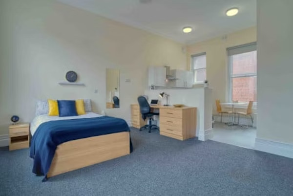 Generous size self-contained studios the majority bedrooms comprise of ¾ beds**, wardrobe, full length mirror. Study area desk and draws. Kitchenette with 2 ring hob, fridge combination microwave oven, table and chairs.En-suite comprises shower, wash hand basin and toilet. WIFI throughout. Please note there are variances on room sizes and layout