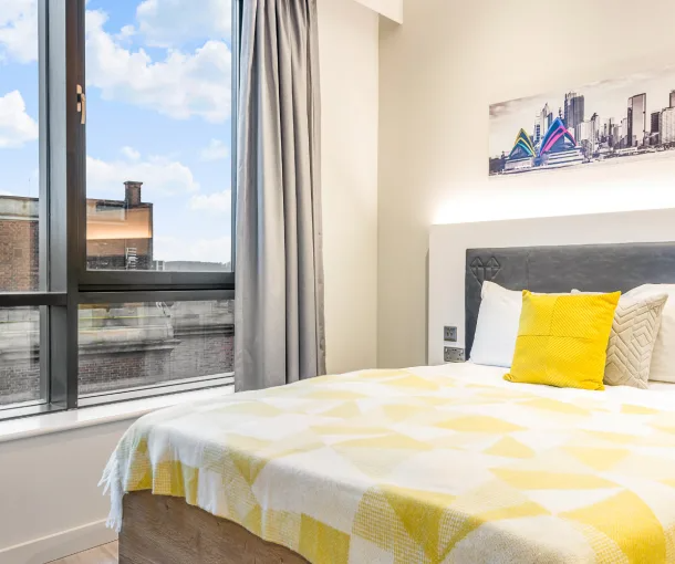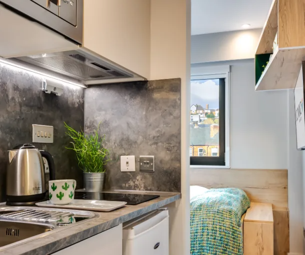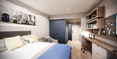 The Smart studio gives you the room to sleep, study and socialise. This medium size apartment has a comfortable double bed, en-suite bathroom, and a fitted kitchen. Our rooms aren't quite ready yet! The images on this page are CGI images, or from one of our other developments.